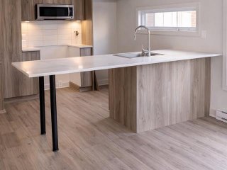 Au niveau de l'entrée principale, vous retrouvez une aire de vie à concept ouvert comprenant une cuisine contemporaine aux lignes sobres, un coin repas chaleureux et un salon lumineux. Les finitions modernes et la qualité des matériaux reflètent un standard supérieur.